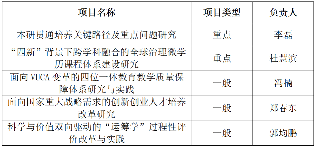 据悉,天津市普通高等学校本科教学质量与教学改革研究计划项目每2年组织一次。2023年管理与经济学部成功获批5项,其中重点项目2项,一般项目3项。具体项目信息如下: