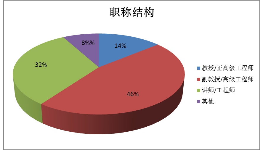 中心队伍在职称结构方面:教授/正高级工程师占14%,副教授/高级工程师占46%,讲师/工程师占32%(如图2),中级职称人员多为实验管理队伍中刚补充的青年教师、实验管理人员和实验技术人员。职称结构合理,形成了高水平人员带动低水平人员,低职称教师辅助高称职教师的合作机制,促进实验教学的快速发展。