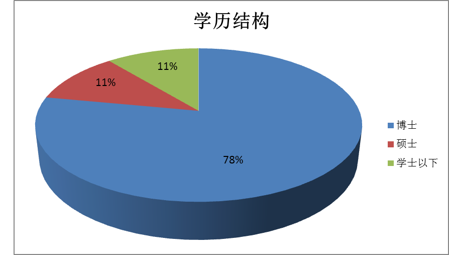 中心队伍在学历结构方面:具有博士学位教师占78%、硕士学位教师占11%人(如图1),从事实验教学的50岁以下的教师基本都具有博士学位。